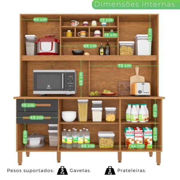 Preparar receitas especiais para a família e os amigos fica ainda melhor quando o espaço está organizado e todas as coisas estão em seus devidos lugares, né? Conte com a Cozinha Compacta Plus para levar ainda mais praticidade à sua rotina. Espaçosa, ela oferece portas e gavetas para você acomodar potes de mantimentos, panelas, pratos, talheres, enfim, todos os itens que utiliza para cozinhar diariamente – além disso, também pode receber eletrodoméstico ou servir de apoio para picar alimentos. Ah, e como bom gosto é essencial para a sua casa, o visual sofisticado e atemporal é fácil de ser inserido na decoração e de ser combinado com outros móveis 😉