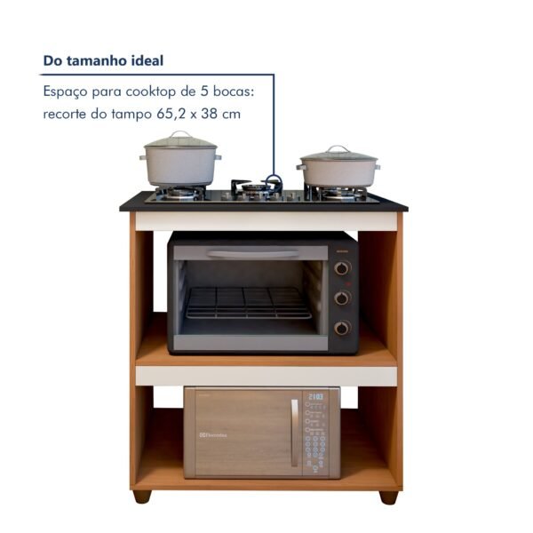 Se você está procurando um balcão de cooktop que traga funcionalidade e estilo ao seu ambiente, esse modelo é para você! Nosso balcão de cozinha para cooktop oferece nicho para micro-ondas integrado, ideal para quem busca otimizar cada canto da cozinha. Além disso, seu acabamento moderno e design compacto são perfeitos para decorar cozinhas pequenas. Transforme sua cozinha em um espaço prático e elegante, e aproveite nossas ofertas online com entrega rápida. Não perca essa oportunidade! <br/><br/>O balcão para cooktop com espaço para micro-ondas é seguro? Claro, ele é seguro e versátil.<br/>Qual diferença no balcão cooktop 4 bocas para o de 5 bocas? O espaço do tampo do balcão cooktop 5 bocas é maior.