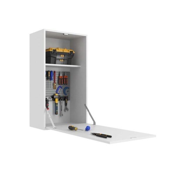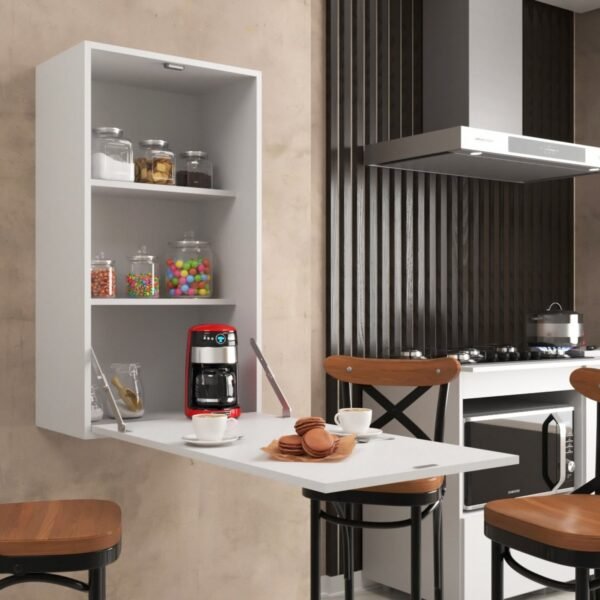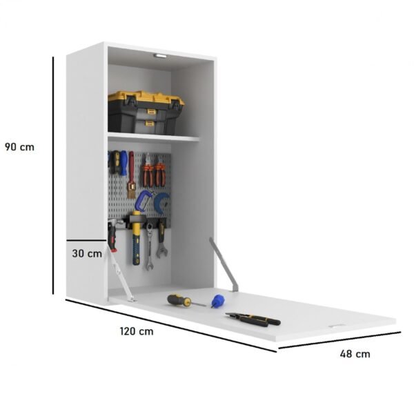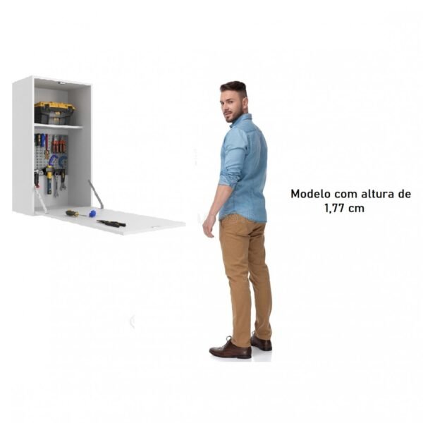 A Bancada suspensa Bari, com altura de 90 cm, comprimento 48 cm e profundidade 30 cm fechado e aberto 116 cm, a Bancada Bari é ideal para área de serviço e outros cômodos para guardar objetos, como ferramentas, materiais de limpeza e entre outras finalidades