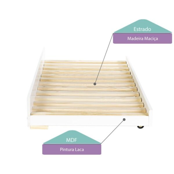 A Casatema é uma loja especializada em Móveis infantis no conceito lúdico, onde a diversão e segurança fazem parte do design de cada peça. Todo o processo de construção de nossos móveis é baseado nas experiências de nossas crianças, o que torna nossos produtos inovadores no mercado!<br/> A Cama Auxiliar Prime II é perfeita quando aquele amiguinho resolveu ficar de última hora. Produzida em madeira maciça/MDF e o acabamento é com pintura em laca branco, garantindo maior durabilidade ao produto. Conta com 2 rodízios para melhor movimentação e 2 pés para a cama fixar melhor no local desejado. Esta cama serve em qualquer modelo de Cama Prime e nos Beliches Teen Play da Casatema.
