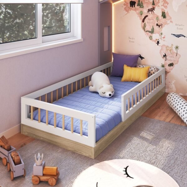 A Cama Montessoriana de Solteiro Linha Affetto da Completa Móveis traz o melhor do estilo montessori para o quarto de bebê ou infantil. Um conceito lúdico para estimular a autonomia e aperfeiçoar o potencial criativo das crianças desde a primeira infância. Com grades em Pinus, trazendo leveza e um toque diferenciado no design. Produto em MDP com estrados em MDF. O produto é entregue desmontado.