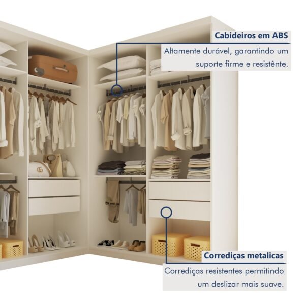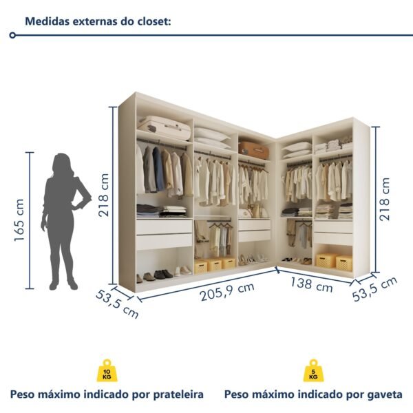 Conjunto Closet L Casal sem Portas 2 Módulos 6 Gavetas França