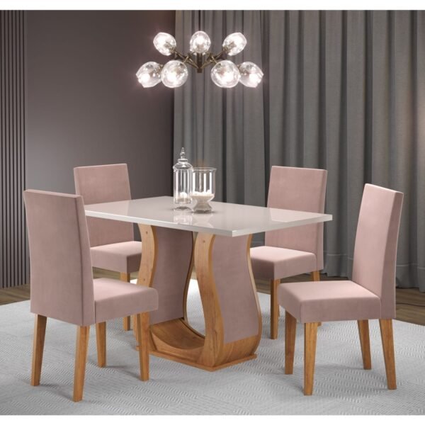 Conjunto Sala de Jantar Mesa Inovare 120x80cm Tampo Vidro/mdp com 4 Cadeiras Venus