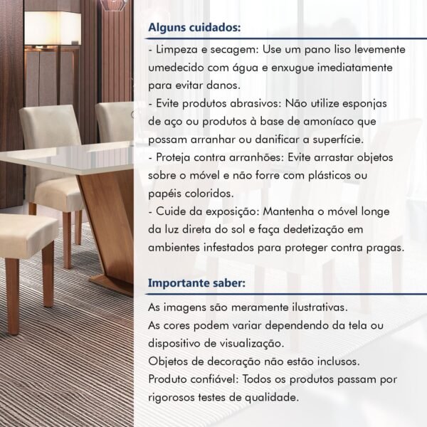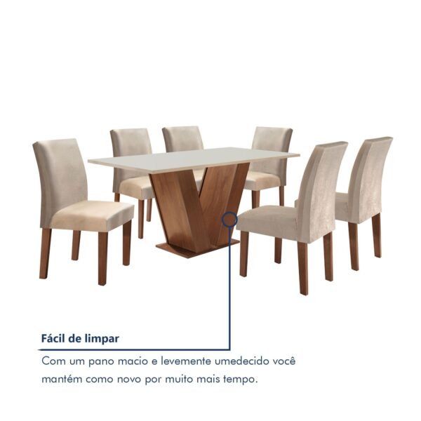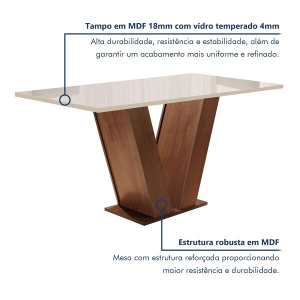 Se você planeja completar a sua casa com bom gosto e charme, então, nosso conjunto de mesa de jantar com 6 cadeiras é o ideal. A mesa com tampo de vidro dá um toque sofisticado e facilita na limpeza, enquanto as cadeiras garantem o conforto para longos momentos especiais. O conjunto de mesa com base em V é uma excelente forma de começar a decoração, não é mesmo? A mesa de jantar quadrada é segura? Claro, segura e funcional. Pode usá-la em outro ambiente? Sim, também é ideal como conjunto de mesa com cadeiras para cozinha e para dar um Up na decoração de sala de estar.