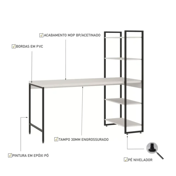 A Mesa c/Estante Active ACEMA6150 é um produto prático e versátil, que pode ser utilizado em diversos ambientes, como quarto e escritório, na sala, cozinha ou seu depósito. Conta com estrutura em aço com pintura epóxi além de 04 prateleiras acopladas, deixando seus objetos mais organizados e ao alcance das mãos.