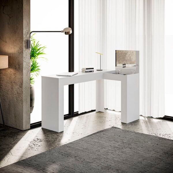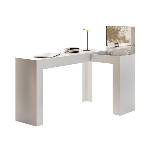 Escrivaninha com Camarim Jade, projetada para atender todas as suas necessidades, essa Escrivaninha conta com um tampo basculante e nichos organizadores para melhor organização de seus objetos. Perfeita para você que está em busca do diferente, funcional, esse produto com certeza deixará seu ambiente muito elegante. Este produto é configurado para ser montado para um único lado específico, ou seja, não possui montagem flex.