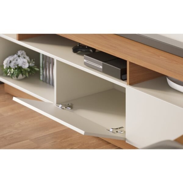 Com a união de elementos do design minimalista e contemporâneo, o Home Theater Humaitá é aquele móvel atemporal e ideal para quem quer a experiência de ter um verdadeiro cinema em casa. Com um painel que suporta TVs de até 65 polegadas, possui detalhes de ripados decorativos em sua lateral, iluminados por uma canaleta de led que proporcionam uma ambientação sofisticada e aconchegante para sala. Contém também nichos internos e duas portas basculantes com pistão a gás ideais para armazenagem e organização de aparelhos eletrônicos e objetos decorativos.