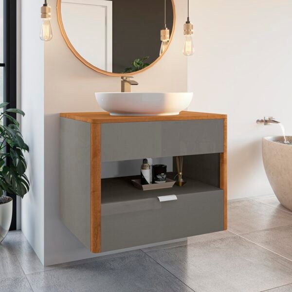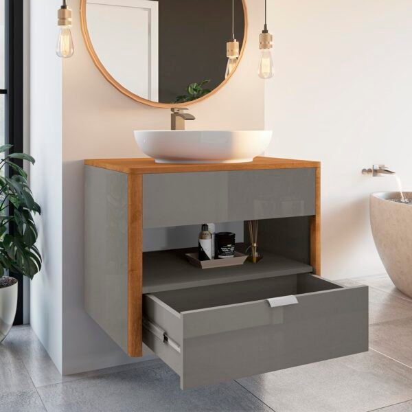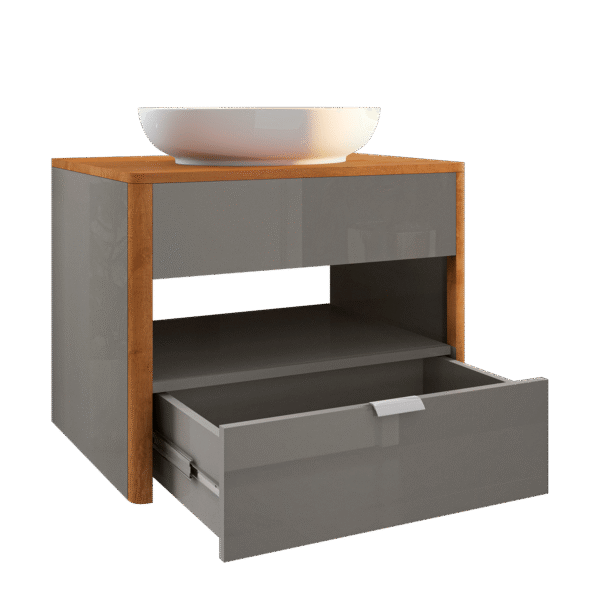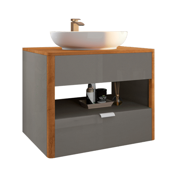 O Conjunto Para Banheiro Santorini é ideal para sua casa! Com design inovador possui seus cantos em molduras com design curvo. Ele é composto por cuba de mármore sintético no formal oval. Gabinete com amplo nicho e gaveta com puxador em alumínio anodizado e corrediças telescópicas proporcionando a abertura completa da gaveta bem como um deslizar mais suave.