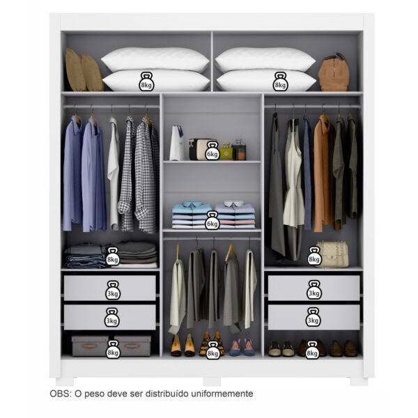 O guarda roupa Serenity conta com 4 gavetas internas e divisórias que facilitam a organização das suas roupas. Seu visual moderno e compacto trás uma elegância a mais ao produto. Perfeito para qualquer espaço, o guarda roupa Serenity conta com 3 portas de correr e pintura UV que proporciona maior qualidade e durabilidade ao seu produto. Tudo isso para facilitar seu dia a dia e combinar ainda mais com o seu ambiente.<br/>Se você busca por um produto que além do visual moderno, tenha maior resistência e divisões que facilitem seu dia a dia o Serenity é a melhor opção.!