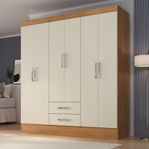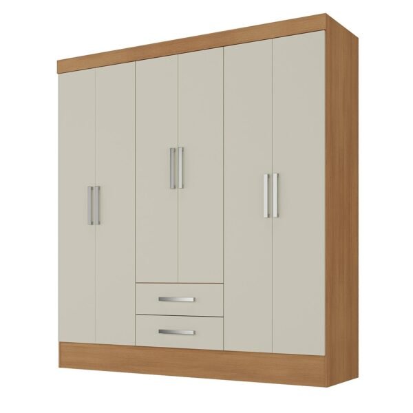 Guarda-Roupa Casal com 6 Portas e 2 Gavetas. Cabideiro em ambos os lado e 7 prateleiras para organizar melhor suas roupas! Gavetas com corrediça metálica. O móvel é todo em MDP e pintura UV, deixando o produto com uma excelente qualidade.