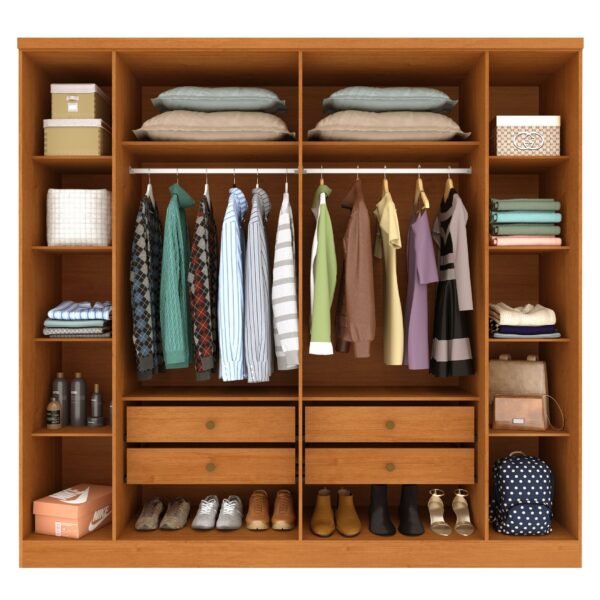 Cansado da desorganização e do espaço mal aproveitado? Deixe seu quarto muito mais bonito e funcional com o Guarda-Roupa Casal 6 Portas 4 Gavetas 239cm Veneza! Ele é a escolha ideal para quem busca praticidade e um aproveitamento inteligente do espaço sem abrir mão do estilo. Com um design moderno e funcional, o Guarda-Roupa Veneza oferece uma excelente organização interna para todas as suas necessidades: Espaço Inteligente: Conte com 8 prateleiras individuais, perfeitas para suas roupas dobradas, acessórios e objetos. Cabideiros Resistentes: Seus 2 cabideiros em alumínio são ideais para manter suas roupas impecáveis e sem amassar. Maleiros Práticos: Os 2 maleiros individuais garantem espaço para itens maiores ou de uso menos frequente. Gavetas Suaves e Seguras: As 4 gavetas internas com puxadores em PVC e corrediças telescópicas proporcionam um deslizamento suave, firme e silencioso, oferecendo maior praticidade e segurança ao produto. O Guarda-Roupa Casal 6 Portas 4 Gavetas 239cm Veneza é sinônimo de robustez e elegância. Produzido em MDP e MDF, ele conta com puxadores em MDF que agregam um toque de sofisticação ao design. As dobradiças de 26mm por porta garantem maior durabilidade e resistência no uso diário. Com 239cm de largura, 234cm de altura e 55cm de profundidade (MAIOR DA CATEGORIA), este roupeiro foi pensado para otimizar seu ambiente, tornando-o muito mais bonito e funcional. Não espere mais para ter o quarto dos seus sonhos! Invista no Guarda-Roupa Casal 6 Portas 4 Gavetas 239cm Veneza e experimente a união perfeita de beleza, funcionalidade e a organização que você merece. Pronto para transformar seu espaço?