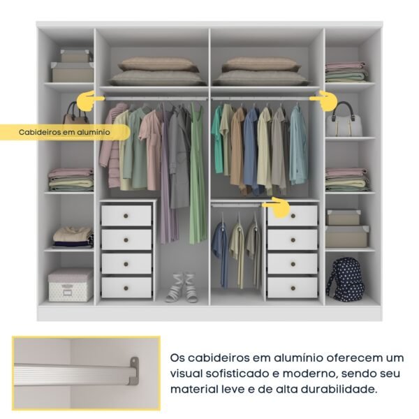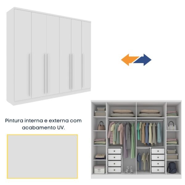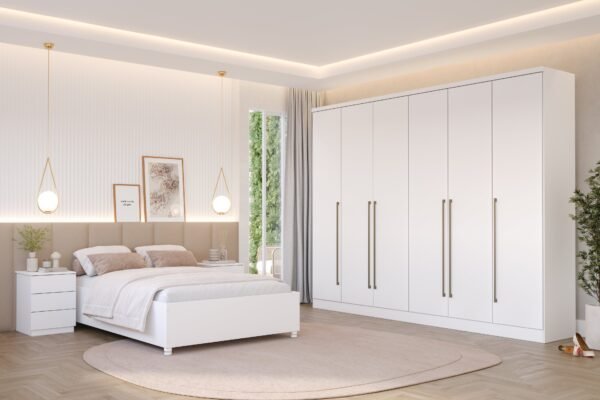 Cansado da desordem e buscando um móvel que seja a estrela do seu quarto? O Guarda-Roupa Casal 6 Portas 8 Gavetas Portugal Espresso Móveis é a solução definitiva! Ele oferece uma combinação perfeita de funcionalidade, estilo inigualável e o máximo de espaço para deixar seu ambiente moderno, organizado e elegante. Com impressionantes 270cm de largura e 55cm de profundidade (A MAIOR DA CATEGORIA), o Guarda-Roupa Casal 6 Portas 8 Gavetas Portugal Espresso Móveis é um verdadeiro gigante da organização, projetado para facilitar sua rotina: 8 Gavetas com Deslizamento Suave: Com puxadores em PVC e corrediças telescópicas, as 8 gavetas proporcionam um deslizamento suave e acesso facilitado para todas as suas peças. 8 Prateleiras Independentes: Tenha liberdade total para organizar sapatos, bolsas, roupas dobradas e caixas nas 8 prateleiras laterais, otimizando cada centímetro do seu espaço. Espaço para Peças Longas e Maleiro Superior: Mantenha suas roupas impecáveis no espaço exclusivo para peças longas e guarde itens maiores no maleiro superior, perfeito para otimizar o uso do seu guarda-roupa. Cabideiros e Calceiro em Alumínio: Seus 2 cabideiros e 1 calceiro em alumínio garantem que suas roupas fiquem sempre penduradas da melhor forma. O Guarda-Roupa Casal 6 Portas 8 Gavetas Portugal Espresso Móveis não é apenas funcional, ele é uma peça de destaque: Fabricado em MDP e MDF, este guarda-roupa oferece a resistência e durabilidade que você precisa. 6 portas com elegantes puxadores em alumínio agregam sofisticação ao design, enquanto as 24 dobradiças de 26mm por porta garantem alta durabilidade e resistência no uso diário. Seu design contemporâneo permite que ele se adapte perfeitamente a diferentes estilos de decoração, complementando seu ambiente com requinte. O Guarda-Roupa Casal 6 Portas 8 Gavetas Portugal Espresso Móveis é a escolha perfeita para quem busca unir praticidade, resistência e um design que impressiona.
