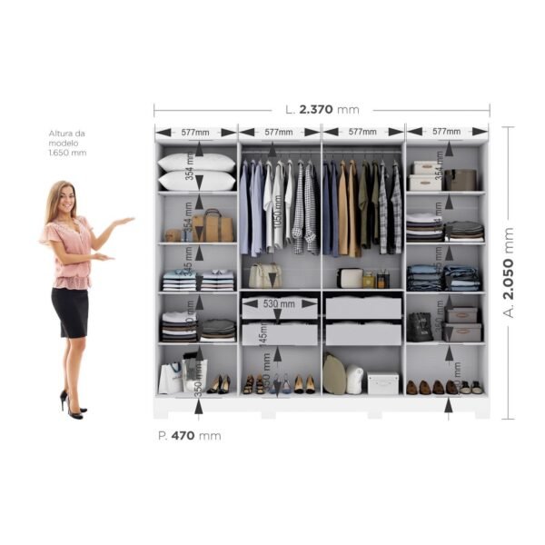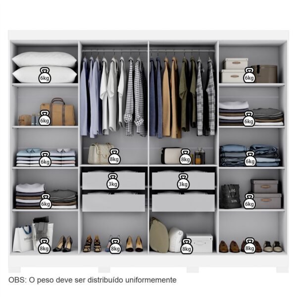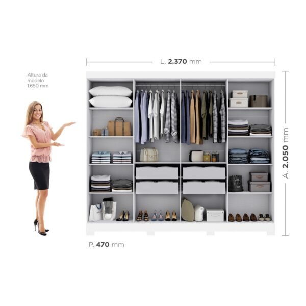 Durabilidade é a palavra para o guarda roupa Paris 8 portas, desenvolvido em material ecologicamente correto, o produto possui 8 portas de abrir com um amplo espaço interno, gavetas internas com corrediças metálicas , varão e calceiro em madeira.<br/> Modulação interna versátil para roupas longas.<br/> O guarda roupa Paris 8 portas é ideal para quem procura espaço e versatilidade, tornado seu ambiente ainda mais moderno e aconchegante.