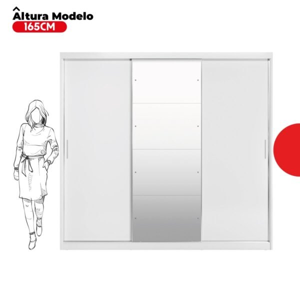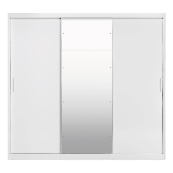 Guarda-Roupa casal com 3 portas de correr 100% MDF, sendo uma com espelhos recobrindo a porta inteira, ótimas disposições internas com aproveitamentos máximo de seu produtos, possuindo 02 cabideiros e um calceiro para melhor acomodas as roupas, 05 prateleiras para oferecer conforto e usabilidade, possui também um maleiro amplo.!