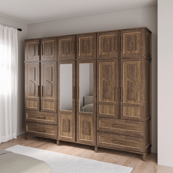 Guarda-Roupas Rio Branco 12 portas, possui doze portas e quatro gavetas. Produzido com madeira Pinus (reflorestada) e HDF, fazendo a montagem das portas, frentes de gavetas, laterais e tampos, o produto é todo estruturado por Madeira Pinus 21 mm e HDF de 2,5 mm, não sendo 100% em madeira maciça, contém aplique nas portas de MDF de 9 mm, corrediças metálicas, dobradiça de pressão, cabideiro. Pés e puxadores em madeira maciça, chaves e espelho nas duas portas centrais. Um design inovador.!