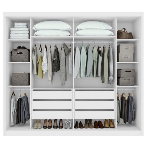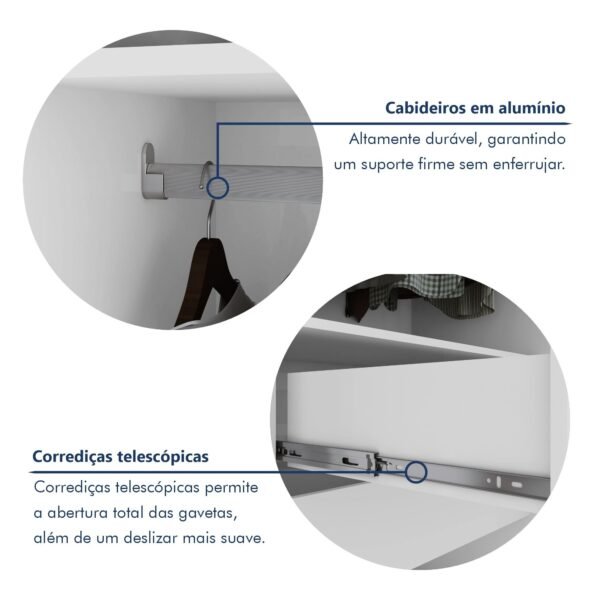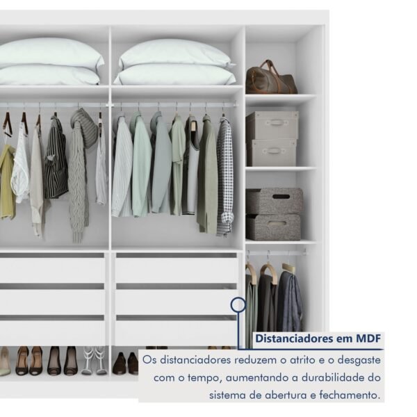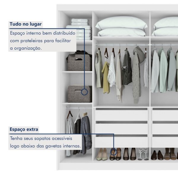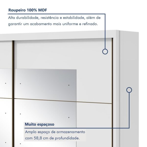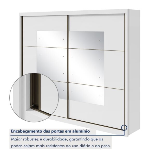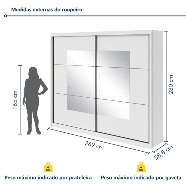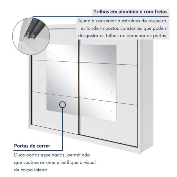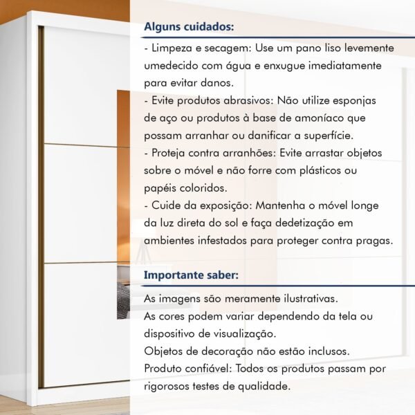 Se você busca organização e um toque de sofisticação, o guarda roupa com espelho é a escolha certa. Ideal para quem precisa de um móvel funcional, ele reflete a luz e amplia o ambiente, deixando o espaço mais leve e moderno. Por ser um guarda roupa com porta de correr, ele otimiza espaço e oferece amplo espaço interno para você organizar roupas, sapatos e acessórios de forma prática, sem abrir mão do estilo. Posso usar o guarda roupa 3 portas para quem divide quarto? Sim, ele é espaçoso e prático para organizar as roupas de duas pessoas! É seguro para usar como guarda roupa infantil? Claro! Ele tem acabamento seguro, ideal para qualquer idade.