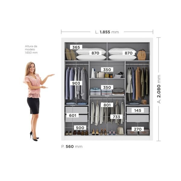 Guarda-Roupa Casal com Espelho 3 Portas 4 Gavetas 185,5cm Viena Yescasa