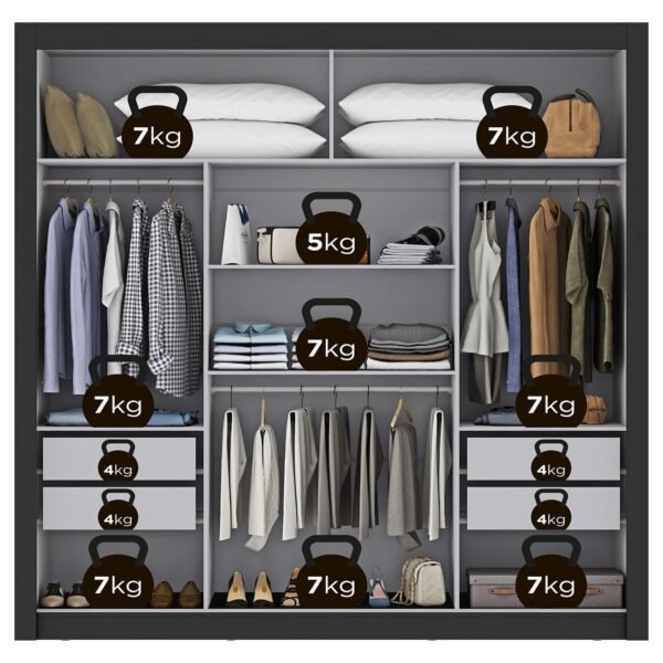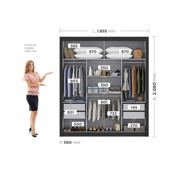 Guarda-Roupa Casal com Espelho 3 Portas 4 Gavetas 185,5cm