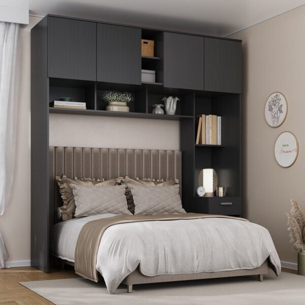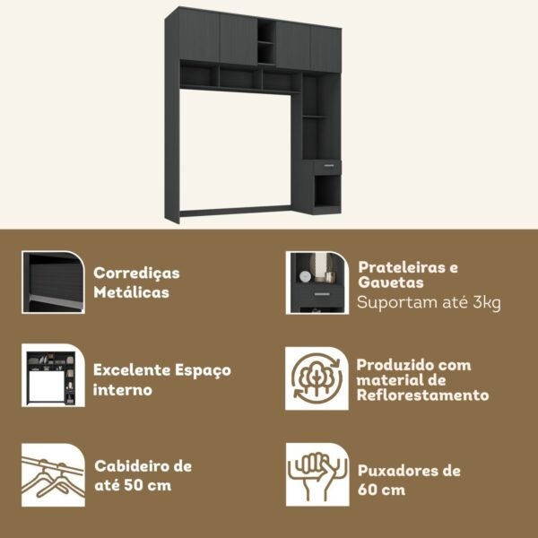 Descubra o Guarda-Roupa Casal Jaspe Ponte 4 Portas 1 Gaveta da , projetado para oferecer amplo espaço de armazenamento e funcionalidade para casais. Com design moderno e acabamento em Finish Foil fosco, este guarda-roupa possui espaço adicional para acomodar uma cama, proporcionando praticidade e estilo ao seu quarto.