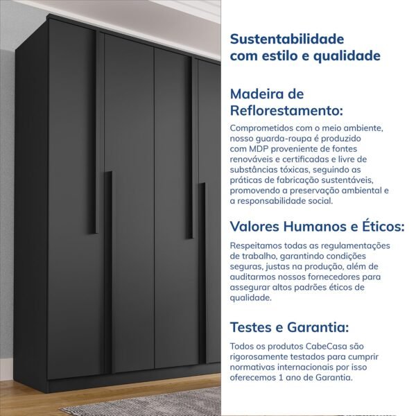 O Guarda-Roupa Sarah combina estilo e funcionalidade em um design moderno e versátil, produzido 100% em MDF com acabamento em pintura UV de alta durabilidade. Pensado para oferecer o máximo em organização, o Sarah conta com divisórias internas projetadas para otimizar o espaço e melhorar a funcionalidade no dia a dia. Seus puxadores imponentes adicionam um toque de personalidade única, transformando qualquer quarto em um espaço sofisticado e organizado. O cabideiro de alumínio garante durabilidade e elegância, enquanto as gavetas internas, equipadas com corrediças telescópicas resistentes, proporcionam uma abertura total mais suave. As dobradiças com amortecimento asseguram um fechamento silencioso e seguro, cuidando do seu móvel por muito mais tempo. Disponível nas versões de 6 e 4 portas e em cores sofisticadas e facilmente adaptáveis o Guarda-Roupa Sarah é a escolha perfeita para quem busca praticidade, beleza e um toque de personalidade em um móvel que se adapta a qualquer ambiente.