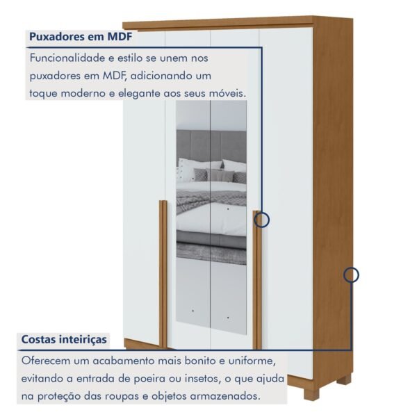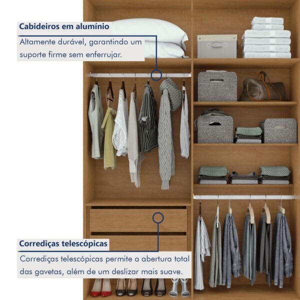 Está na hora de renovar seu quarto com um guarda-roupa que une espaço, estilo e praticidade! Nosso guarda roupa é tudo o que você procura: moderno, versátil, amplo, e cheio de compartimentos para organizar suas roupas, sapatos e acessórios. Feito com materiais de alta qualidade, ele garante durabilidade e um visual moderno que combina com qualquer decoração para quarto. É a solução ideal para quem busca funcionalidade sem abrir mão do charme. Invista no guarda-roupa perfeito e transforme seu quarto agora mesmo! Posso usar esse guarda-roupa solteiro para dividir entre duas pessoas? Sim, ele é espaçoso e prático para organizar as roupas de duas pessoas! É seguro para usar como guarda roupa infantil? Claro! Ele é feito em MDF e tem acabamento seguro, ideal para qualquer idade.