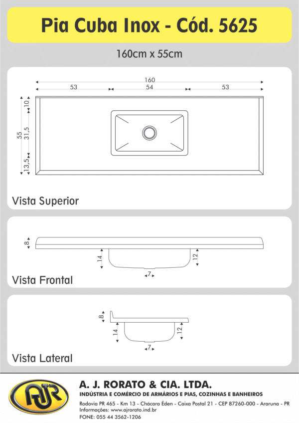 Pia de Cozinha em Mármore Sintético com Cuba em Aço Inox 160cmx55cm Aj Rorato