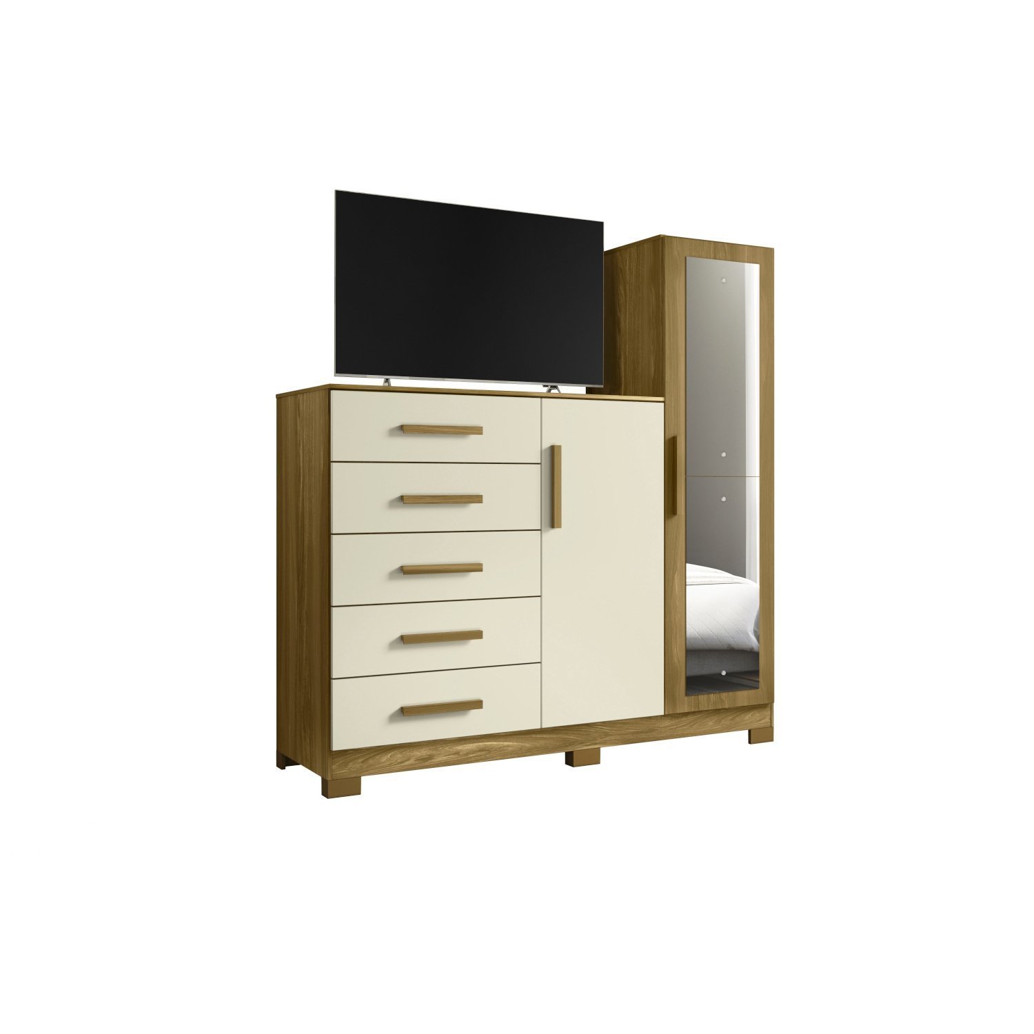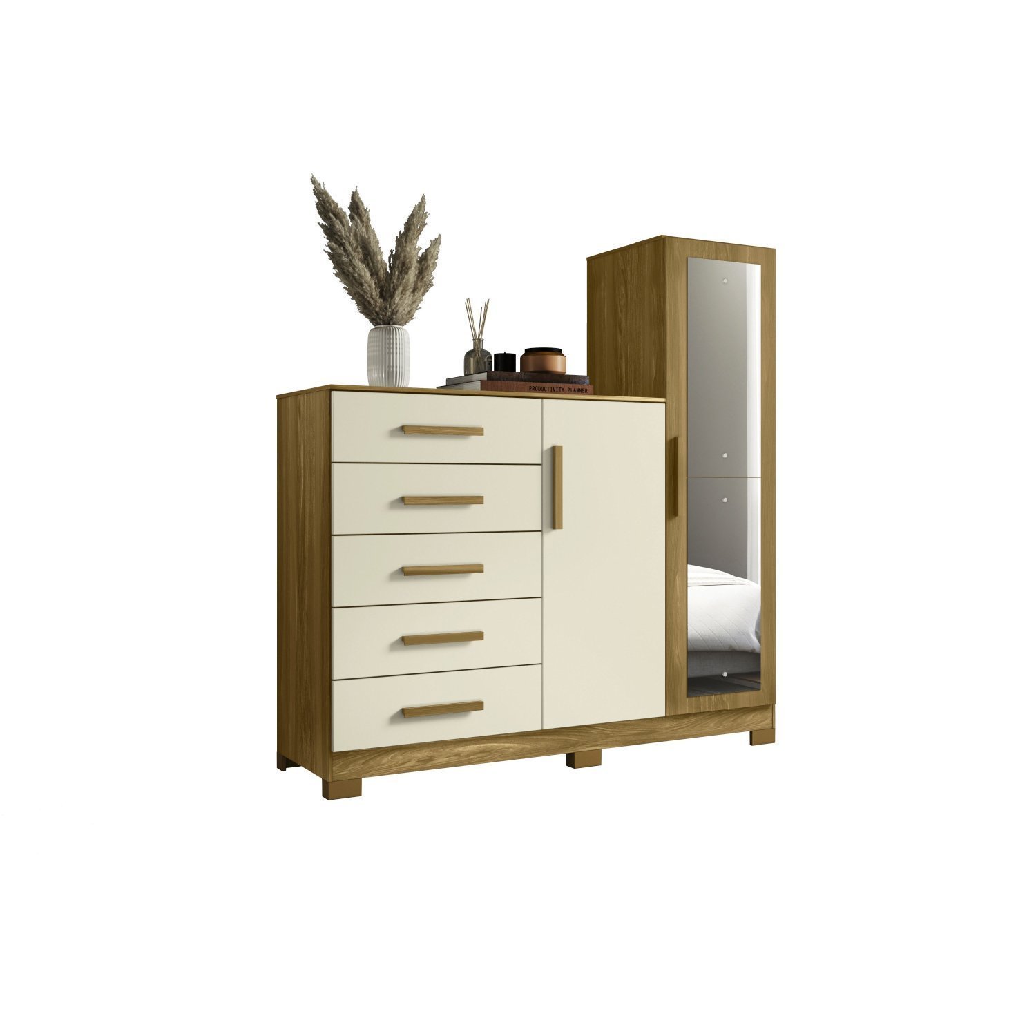 Cômoda para Quarto 5 Gavetas e 2 Portas com Espelho New Master