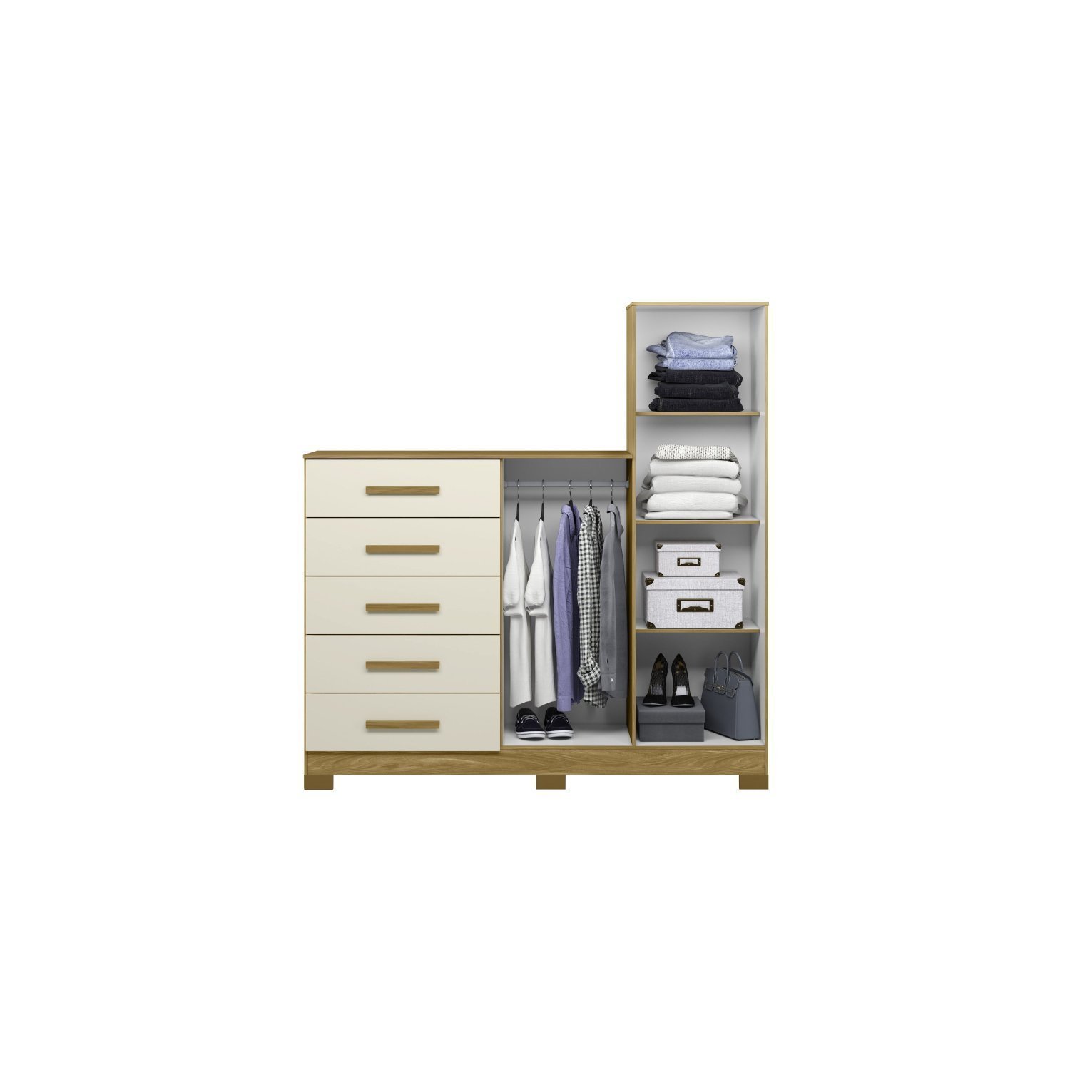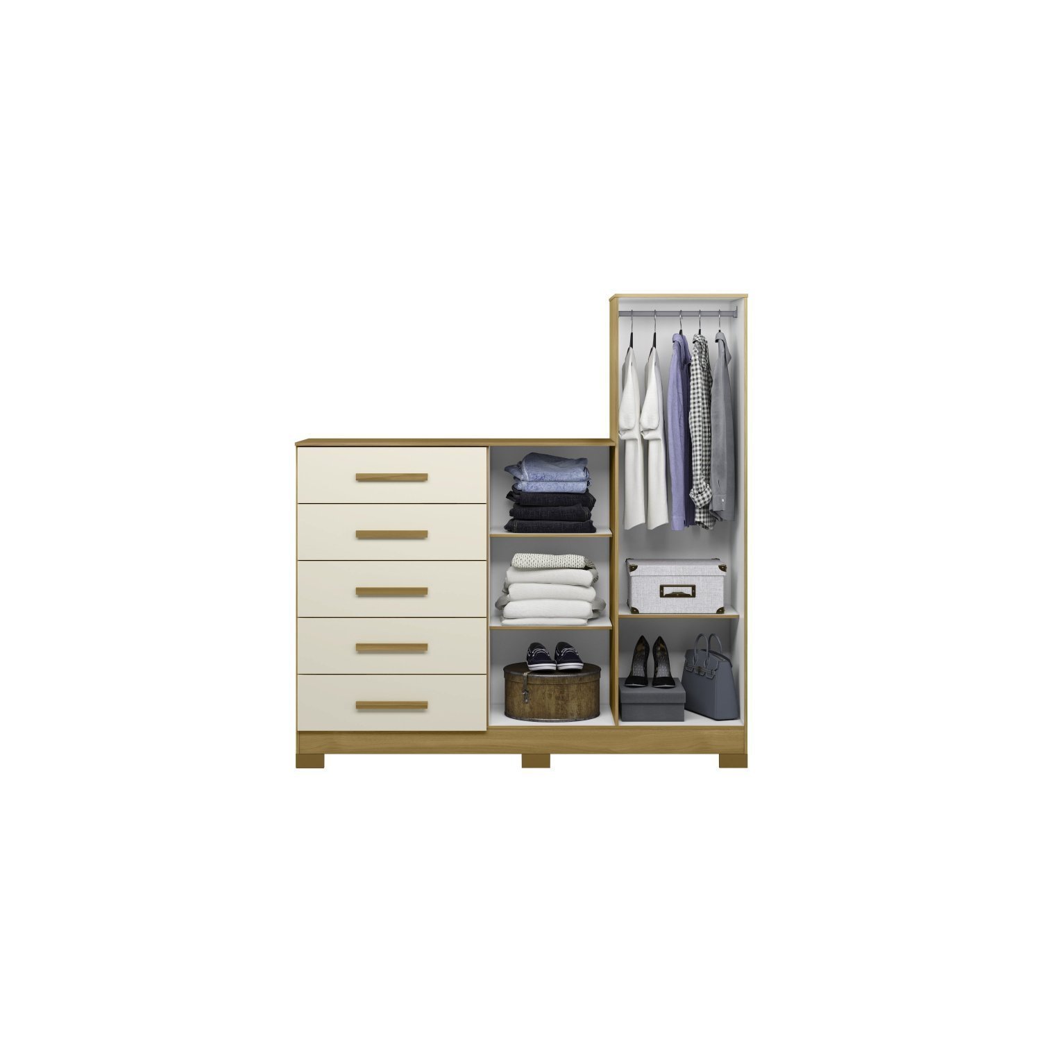 A cômoda New Master além de belíssima, é ideal para organização do seu quarto e de suas roupas. Ela possui 5 gavetas com corrediças telescópicas que proporciona mais abertura e resistência ao móvel, e 2 portas, sendo 1 com espelho. Seu tampo é de 15 mm e os puxadores são em MDF revestidos. Além disso tudo, ela possui espaço para eletrônico e apresenta uma versatilidade com opção de utilizar prateleira móvel ou cabideiro em seu espaço, você escolhe a opção que atenda a sua necessidade.