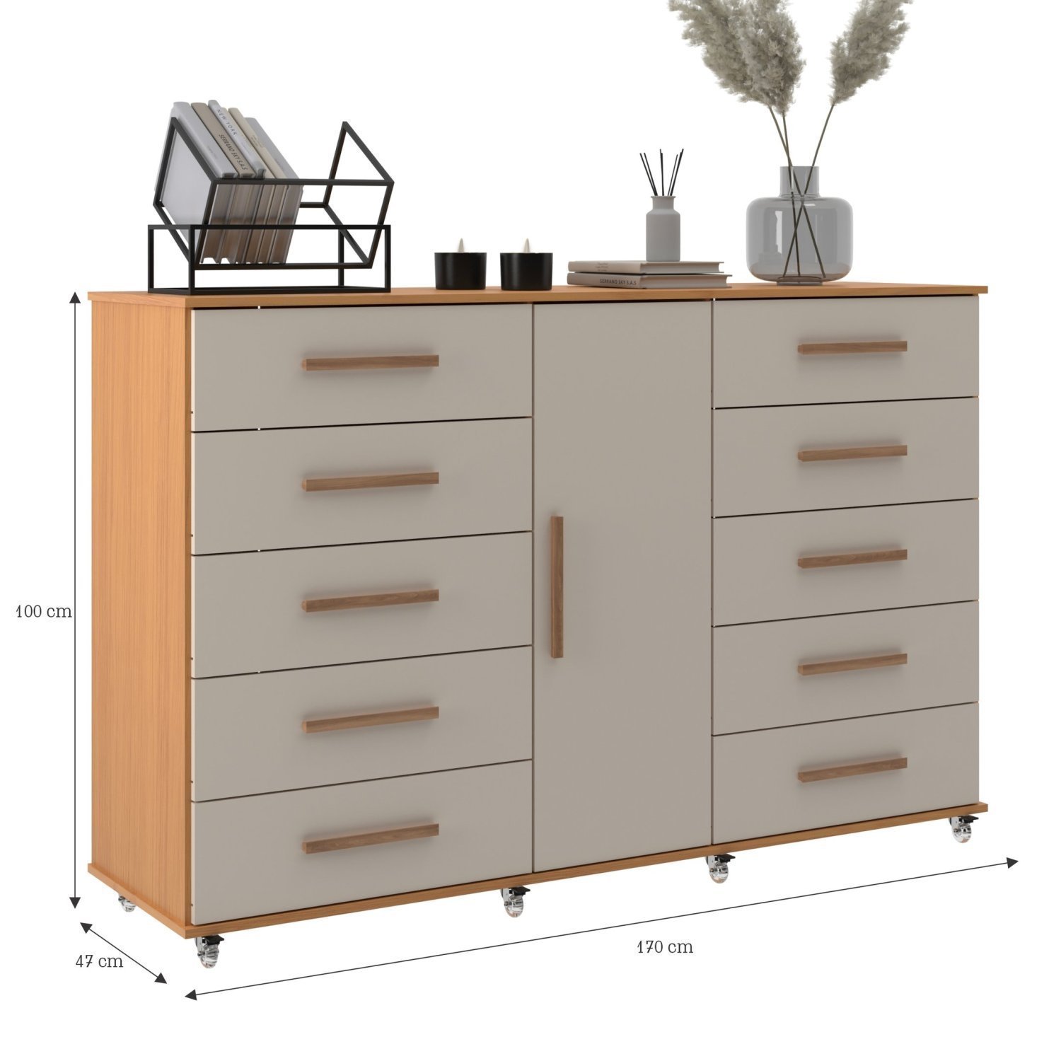 A Cômoda Sapateira 1 Porta 10 Gavetas com Rodízio Monterrey é a solução perfeita para quem busca praticidade, organização e elegância em um único móvel. Com um design moderno e funcional, esta cômoda é ideal para otimizar o espaço do seu quarto ou closet, proporcionando um ambiente mais harmonioso e bem organizado.Com 10 gavetas equipadas com Trilho Telescópico, você terá amplo espaço para armazenar roupas, acessórios e objetos pessoais de forma organizada e acessível. Além disso, a presença de uma porta confere um toque de sofisticação ao móvel, permitindo a guarda de itens maiores ou mais delicados com segurança.O puxador em MDF na cor Nogal Manchester agrega um charme especial à cômoda, combinando perfeitamente com diversos estilos de decoração. O material em MDP garante a durabilidade e resistência do móvel, enquanto o acabamento em Finish Foil e Pintura UV confere um aspecto refinado e de alta qualidade.Com a praticidade dos rodízios, você poderá movimentar a cômoda com facilidade, adaptando-a conforme a sua necessidade e preferência. Seja para guardar sapatos, roupas, acessórios ou objetos diversos, a Cômoda Sapateira 1 Porta 10 Gavetas com Rodízio Monterrey é a escolha perfeita para quem busca um móvel versátil, funcional e elegante. Adquira já o seu e transforme o seu ambiente em um espaço mais organizado e charmoso!