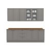 Descubra a Linha Americana da Henn, onde o estilo clássico americano ganha vida com usinagem em baixo relevo e pintura texturizada fosca. Os detalhes são enriquecidos com puxadores em Zamac dourado e dobradiças de 25mm com amortecimento, garantindo não apenas beleza, mas também funcionalidade com corrediças telescópicas. A flexibilidade é um ponto alto, com módulos que podem ser montados conforme sua necessidade, proporcionando uma organização personalizada. Para completar, o balcão pia vem com porta-talheres e porta-detergente integrados, elevando o padrão de conveniência e eficiência.