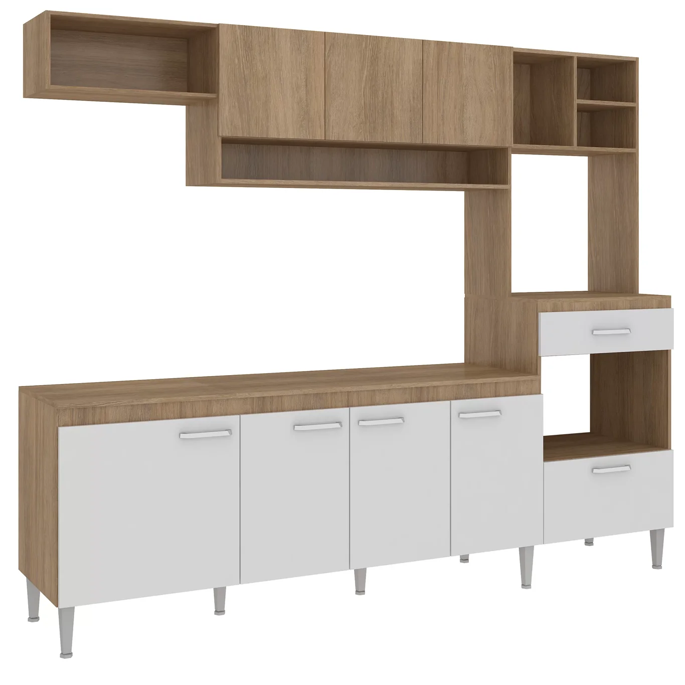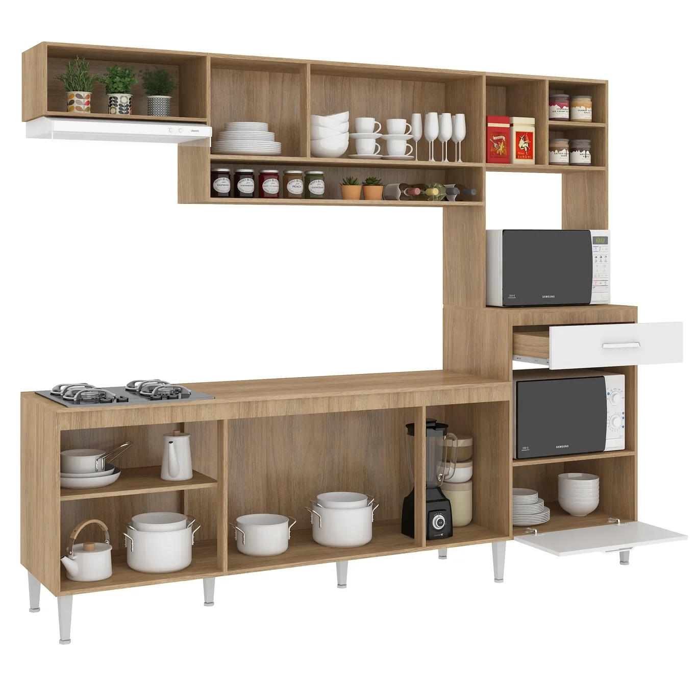 Encante-se pela linda Cozinha Inova, composta por 8 portas e 1 gaveta. Acabamento em Pintura UV de última geração, que garante excelente qualidade e durabilidade. Acompanha: Balcão de 120cm com tampo; Balcão com tampo que suporta cooktop de 4 bocas; Aéreo de 120cm com nicho para condimentos; Aéreo superior para depurador ou geladeira de 60cm e Paneleiro Lateral com gaveta que possui nicho para micro e nicho para forno e nicho para utensílios e decorações; além de 8 pés 17cm com nivelamento de altura e 8 puxadores cromados. Possui um ótimo aproveitamento do espaço interno, com capacidade para armanezamento desde utensílios, panelas, até alimentos. As dobradiças e corrediças são metálicas. Paneleiro pode ser montado tando para lado direito quanto esquerdo. Compre já essa linda cozinha!