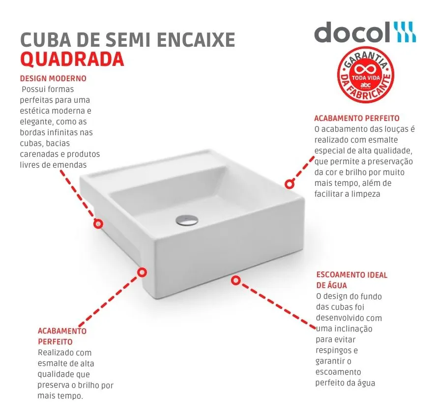 Cuba Semi Encaixe Quadrada Com Mesa 41cmx41cm Luxo Docol Branco