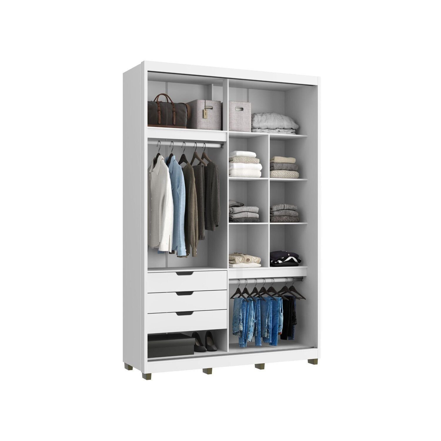 Transforme o seu ambiente com o Roupeiro Thales 2 Portas de Correr e 3 Gavetas! Com um design moderno e funcional, ele é perfeito para quem busca praticidade e elegância. Com 2350mm de altura, 1500mm de largura e 540mm de profundidade, o Roupeiro Thales oferece um ótimo espaço interno para organizar suas roupas e acessórios, tudo com a qualidade e a resistência do MDF. As portas de correr com acabamento grafiatto, puxadores em MDF e molduras de 25mm proporcionam um acabamento elegante. O roupeiro conta com 03 gavetas internas com acabamento usinado e corrediças telescópicas. Além disso, o roupeiro conta com cabideiros em alumínio e trilho inferior de alumínio, garantindo durabilidade e resistência. Garanta já o seu!